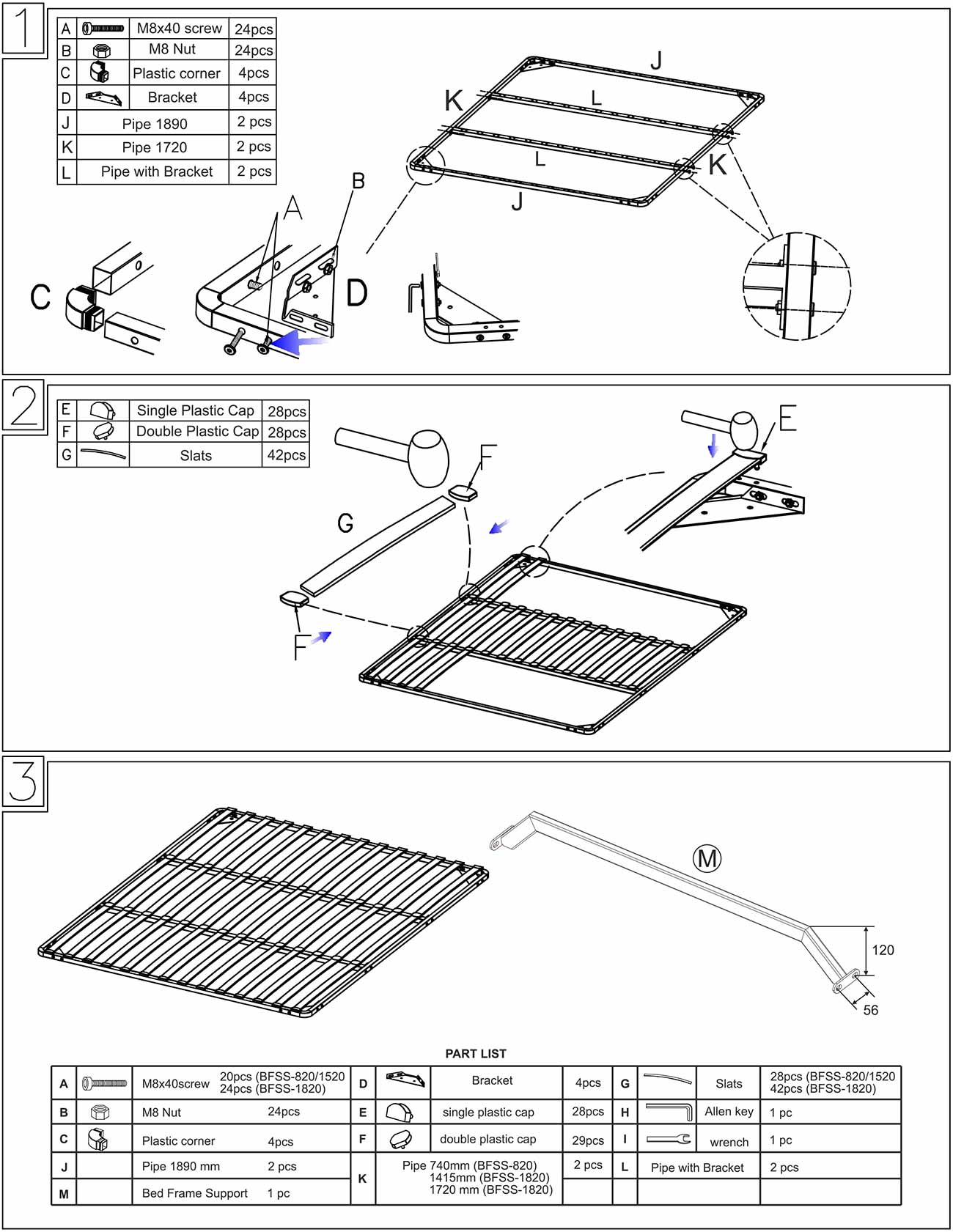 1) Specially designed bed frame with slats and bed crossbar support to create a storage under the bed.